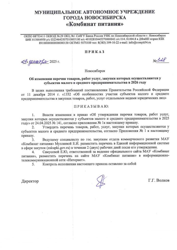 МАУ «Комбинат питания» основан в 1963 году, является специализированным предприятием общественного питания и оптово-розничной торговли...